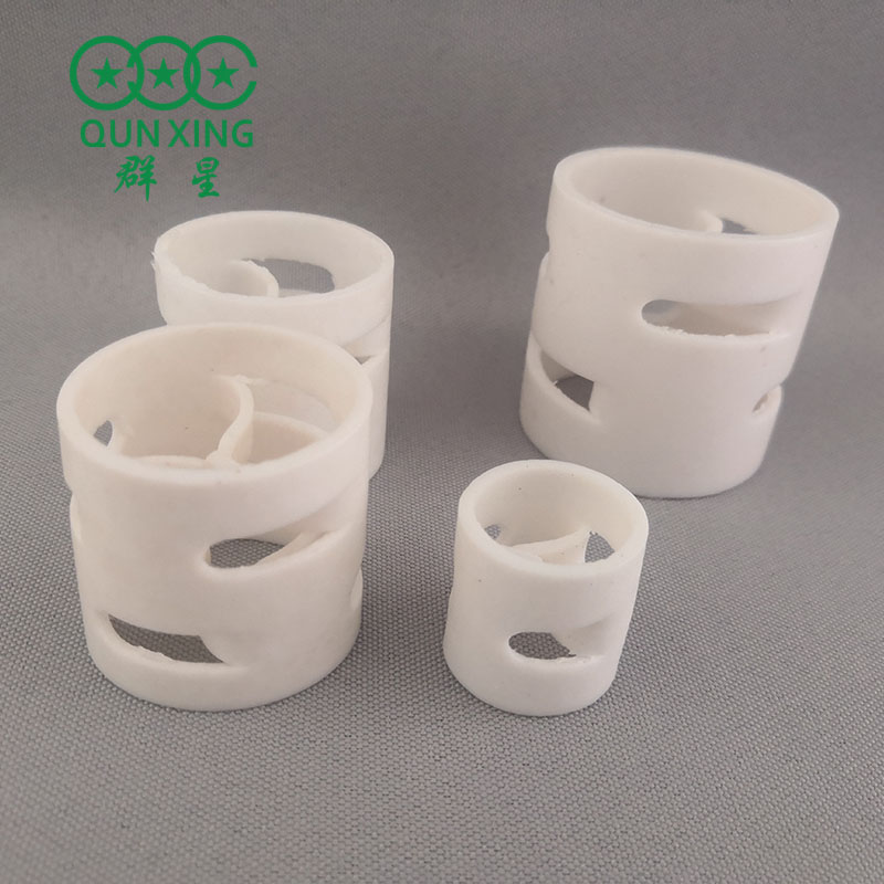 塑料填料是由高分子Y機(jī)物質(zhì)(聚乙烯PE、聚氯乙烯PVC、氯化聚乙烯CPVC、聚偏氟乙烯PVDF、聚丙烯PP、聚四氟乙烯PTFE等)加工制備的填料,國內(nèi)一般多采用聚